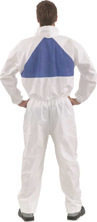 - jednorázový ochranný oděv s kapucí kategorie III- prodyšný, minimální pouštění vláken- zesílený klín pro zvýšenou odolnost- 3-dílné provedení kapuce pro zvýšenou kompatibilitu s dalšími OOPP- dvoucestný zip s légou- elastické zakončení rukávů, nohavic, kapuce a pasu- kombinuje vynikající chemickou bariéru netřepivé přední části s prodyšností a pohodlím modrého dílu na zádech, určen na ochranu proti lehkému postříkání kapalinou (typ 6), nebezpečnému prachu (typ 5)- použití při stříkání nátěrových hmot, čištění zařízení v lehkém strojírenství, výroba cementu, farmaceutický průmysl- MOQ: 1 sáček - 1 ks; 1 karton - 20 ks