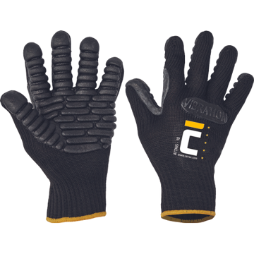 Pletené rukavice s antivibračními polštářky z pěnového latexu v dlani, pružná manžeta.