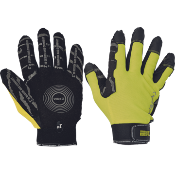 Antivibrační rukavice, ve dlani a dlaňové části prstů všity polštářky z antivibračního materiálu. Doporučené použití: práce s vibračním ručním nářadím (pily, křovinořezy, zbíjecí kladiva, apod.). Odvětví: lesnictví, zahradnictví, stavebnicví, hobby.