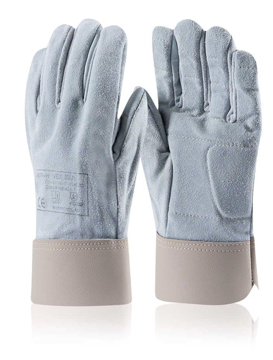 Celokožené antivibrační rukavice z měkké lícové usně a hovězí štípenky, volnou manžetou a bavlněnou podšívkou.