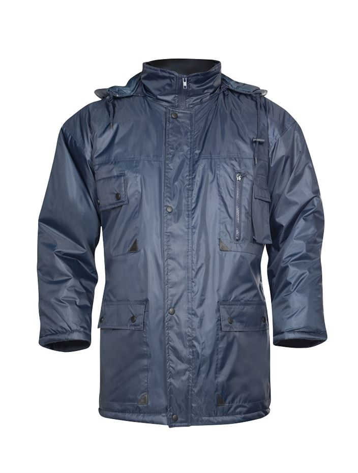 zimní nylonová pánská bunda s PVC zátěrem voděodolná s odnímatelnou kapucí vnitřní materiál 100% nylon zapínání na krytý zip multifunkční kapsy