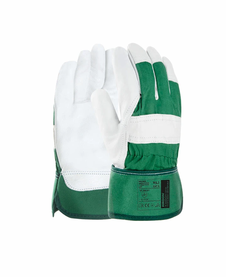 Ochranné pracovní rukavice BREMEN jsou vyrobeny z kvalitní bílé hovězí lícovky, která poskytuje vynikající mechanickou odolnost a spolehlivou ochranu proti oděru při různých manuálních činnostech. Kůže je zároveň flexibilní, prodyšná a měkká, díky čemuž dobře přebírá teplotu z okolí a zajišťuje komfort při dlouhodobém nošení.