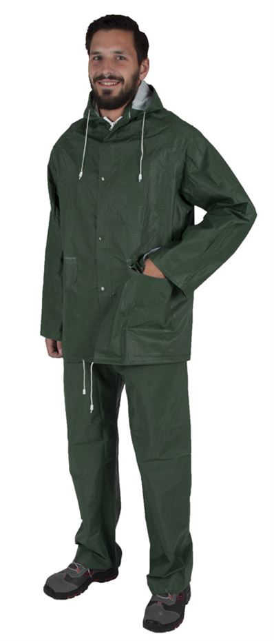 dvoudílný komplet blůzy a kalhot do pasu voděodolný materiál, tloušťka 0,28 mm gramáž 340 g/m² (+- 10g) šité a svařené švy blůza délka 85 cm, uzavřený zip, s kapucí, stahování spodního lemu, dvě kapsy kalhoty s elastickým pasem materiál: PES/PVC barva: zelená velikosti: M - XXXLUvedená cena za 1 ks.Záruka: 24 měsíců