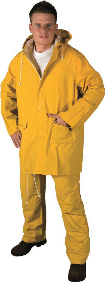 dvoudílný komplet blůzy a kalhot do pasu voděodolný materiál, tloušťka 0,28 mm gramáž 340 g/m² (+- 10g) šité a svařené švy blůza délka 85 cm, uzavřený zip, s kapucí, stahování spodního lemu, dvě kapsy kalhoty s elastickým pasem materiál: PES/PVC barva: žlutá velikosti: M - XXXLUvedená cena za 1 ks.Záruka: 24 měsíců