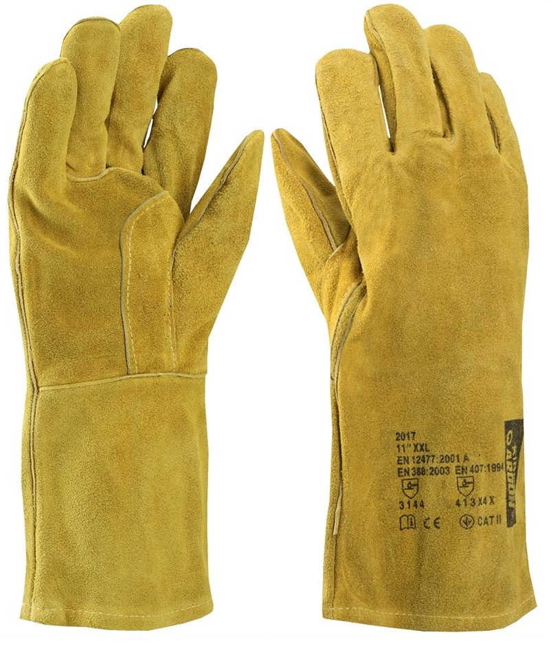 Hovězí štípenka vytvoří pevnou izolační vrstvu, která brání pronikání tepla i jisker. Propracovaný střih rukavic dovoluje snadné oblékání a pouze minimálně omezuje hybnost rukou a prstů. V rukavicích je možné pevně a bezpečně držet nářadí, materiál i další vybavení.