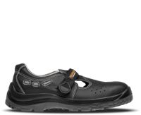 Bezpečnostní sandály bez ocelové tužinky s antistatickou a protiskluzovou podrážkou odolnou pohonným hmotám, absorpcí energie v patě a svrškem z prodyšné kůže.