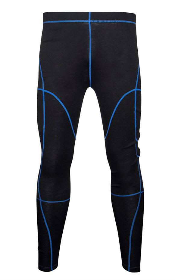 kvalitní funkční spodky dlouhé nohavice pružný pas hodnotný přírodní materiál kontrastní modré prošití materiál: 50% merino vlna, 50% polyester barva: černá velikosti: S - XXLZáruka: 24 měsícůbalení 1 / 20 ks v kartonu