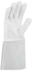Celokožené rukavice z lícové kozinky s 15 cm širokou manžetou z hovězí štípenky. Certifikát: svářečské práce - typ B