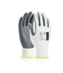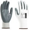 Bílý nylonový úplet, dlaň a prsty povrstvené šedou nitrilovou pěnou