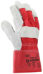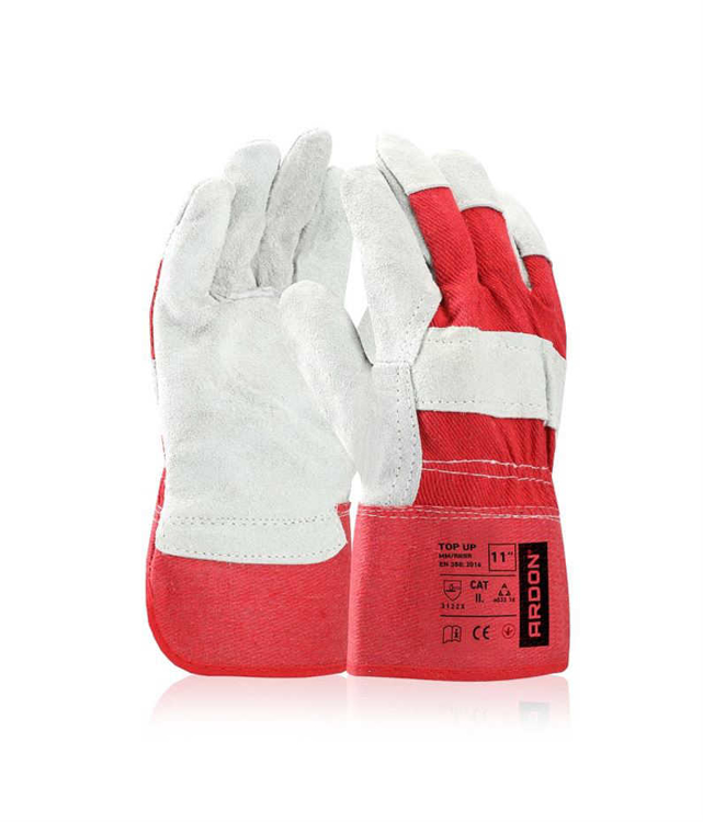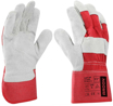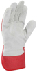 Popis: Kvalitní šedá hovězí štípenka, hřbet z červené bavlny, vyztužená manžeta