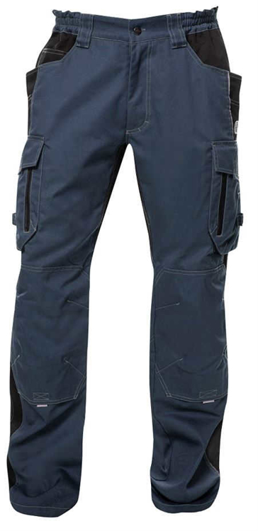 Sportovní střih se svislými liniemi skvěle padne a lichotí postavě. V případě potřeby je možné dokoupit pásek, pro jehož umístění jsou kalhoty vybaveny poutky. Celkový módní design dotváří kontrastní prošívání riflovou nití a také reflexní potisky a doplňky, které vedle ozdobného účelu také zvyšují viditelnost pracovníka a tím mu poskytují maximální bezpečí i při práci v noci nebo při zhoršené viditelnosti.