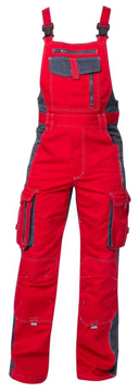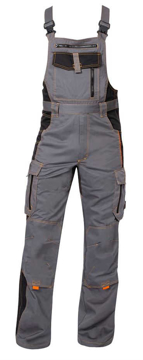 Pánské zahradníky, zesílená kolena s možností vložení kolenních výztuh, pevný pas s poutky na opasek, přední klínové kapsy, zadní kapsy s klopami, boční multifunkční kapsy, náprsenka s kapsou, reflexní doplňky.