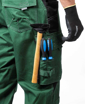 • kapsy na šroubovák, poutka na tužky, 2 kapsy na skládací metr integrované do lampasu na levé i pravé straně