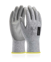 Protipořezové rukavice s dlaněmi a prsty máčenými v polyuretanu. Odolnost proti řezu 3.