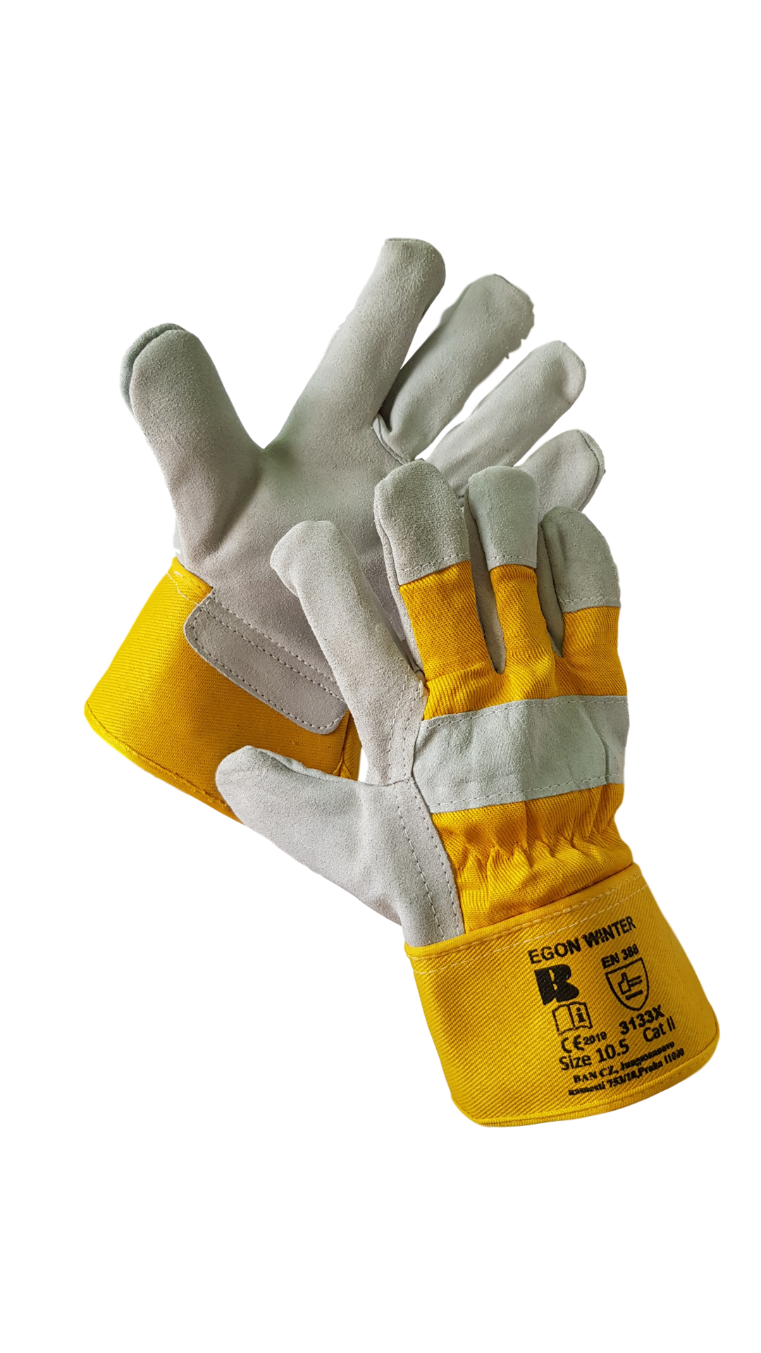 Popis: Zimní kombinované rukavice BAN EGON WINTER 03102. Rukavice jsou vyrobeny z velmi silné hovězí štípenky. V dlani s fleecovou podšívkou. Manžeta rukavic je vyztužená. EN 388.Materiál: silná hovězí štípenka, fleece
