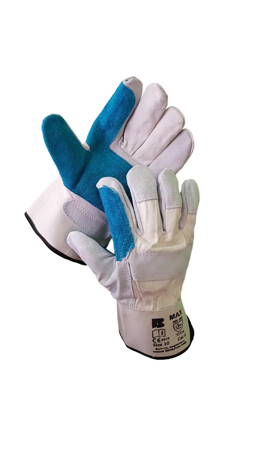 Popis: Pracovní rukavice BAN MAX 03130. Rukavice jsou vyrobeny kombinací dvou materiálů, z silné hovězí štípenky v dlani a bavlněné tkaniny, která je umístěna na hřbetu a manžetě. Dlaň je zdvojená. V dlani s podšívkou. EN388.