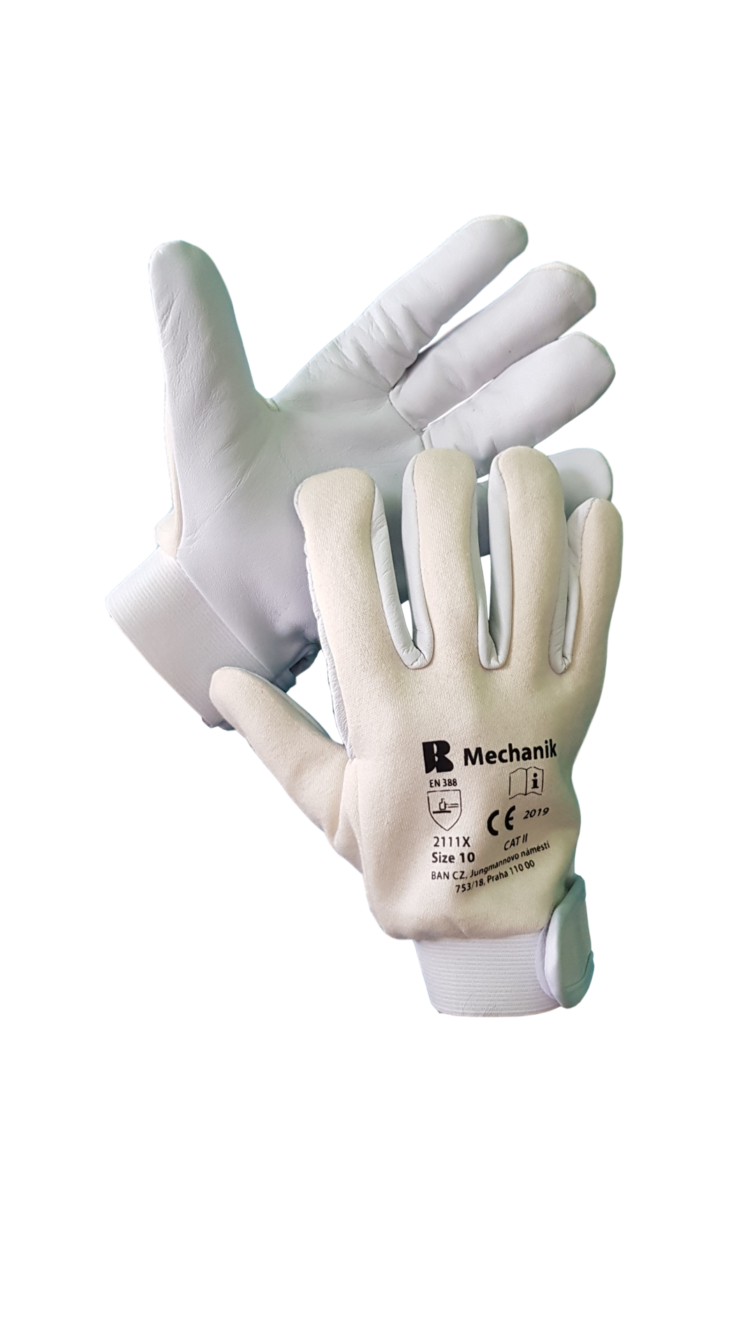 Kombinované rukavice BAN MECHANIK 03042. Materiál rukavic je kombinací dvou materiálů, jemné lícové ovčiny (jehnětina) a bílé bavlněné tkaniny. Bavlněná tkanina je umístěna na hřbetu. Manžeta rukavic je bavlněná s možností regulace šířky, a to pomocí zapínání na suchý zip. EN 420Materiál: jehnětina/bavlna