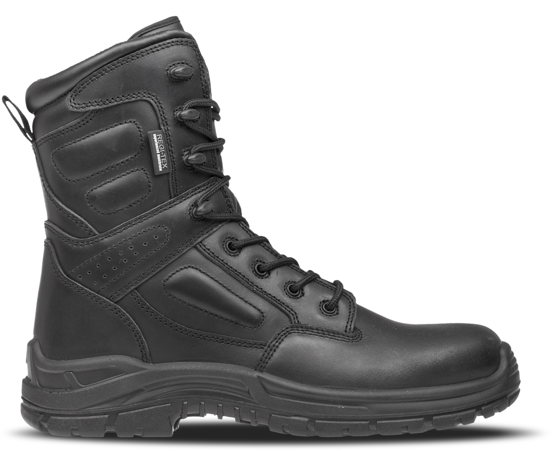 Celokožená taktická obuv vybavená hydrofobním svrškem, membránou REGI-TEX® a dvoukomponentní podešví PU/pryž. Klasický zásahový model vhodný pro univerzální použití v průběhu celého roku.