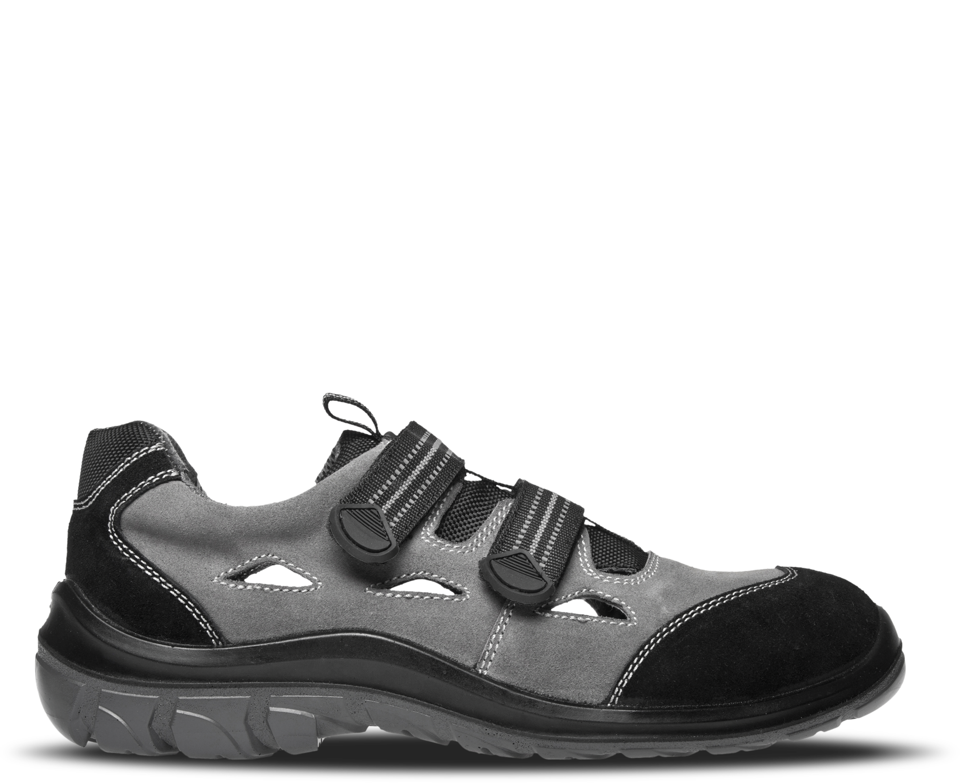 Lehký a vzdušný sandál s plastovou tužinkou a dvěma velcro pásky pro lepší fixaci nohy v obuvi. Obuv je opatřena reflexními prvky a je vhodná do vnitřních i venkovních suchých provozů..