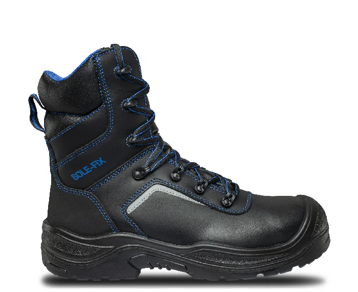 Bezpečnostní celokožená nonmetalická hydrofobní obuv poloholeňového střihu s označením S3.V oblasti kotníku je obuv vybavena systémem SOLE-FIX, který zajišťuje lepší fixaci chodidla.