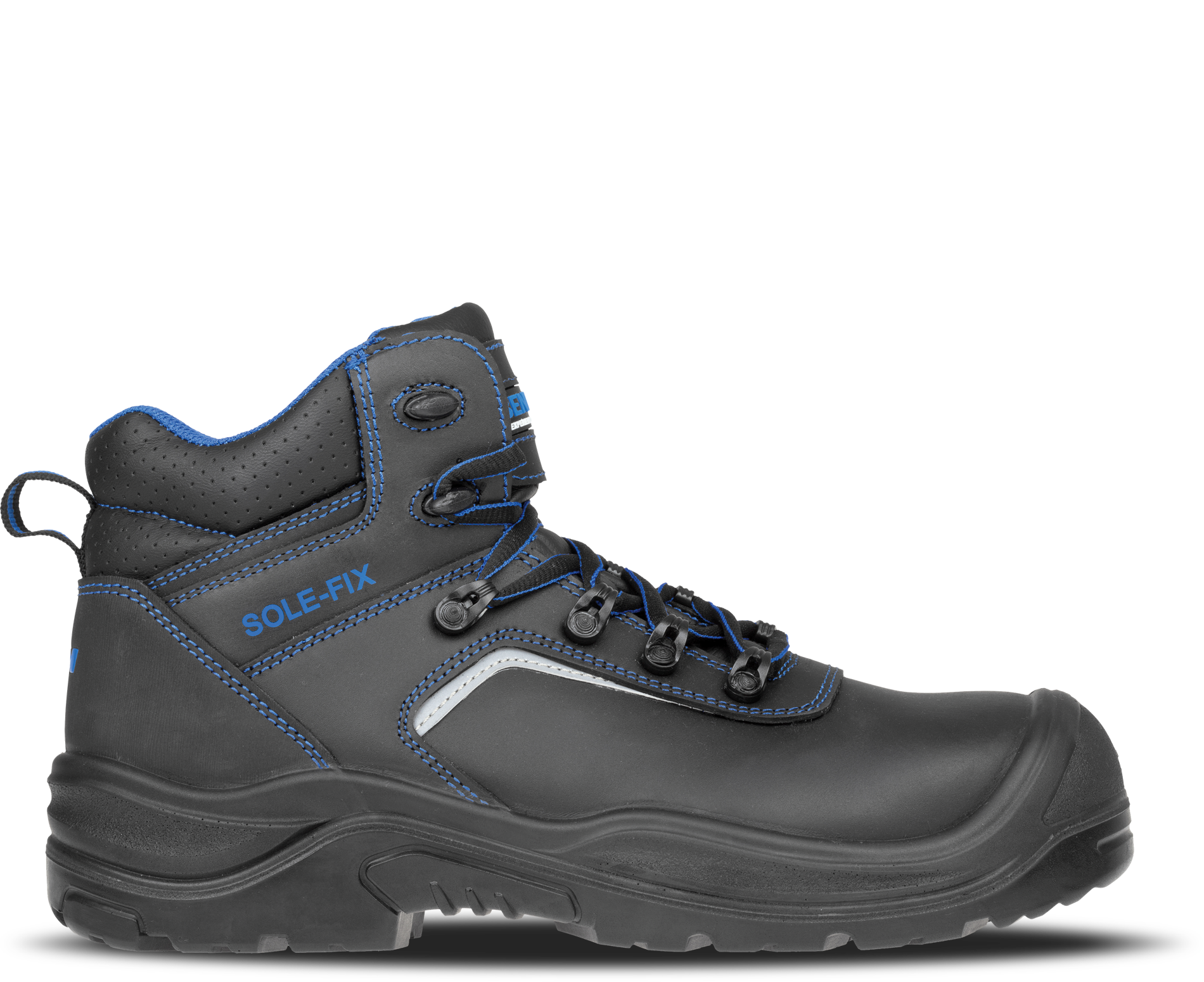Bezpečnostní celokožená kotníková obuv s označením S3. V oblasti kotníku je obuv vybavena systémem SOLE-FIX, který zajišťuje lepší fixaci. Bota má reflexní prvek pro lepší viditelnost, kevlarovou planžetu a kompozitní tužinku.