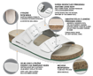 Lehoučká, vysoce komfortní obuv na měkké stélce vyrobené z pravého přírodního korku. Anatomicky tvarovaná platforma podporuje příčnou i podélnou klenbu nožní a díky výrazné patní misce zajišťuje i dobrou stabilitu postavení patní kosti. Izolační vlastnosti korku výborně chrání chodidlo před horkem i chladem odspodu. Usňová stélka zajišťuje vysokou absorpci i desorpci potu a tím sucho a pohodlí při nošení. Mechová mezipodešev účinně tlumí rázy při chůzi. Podešev z lehčeného EVA přispívá k nízké hmotnosti a vyšší odolnosti proti oděru a opakovanému ohybu. Ideální pro celodenní nošení.
