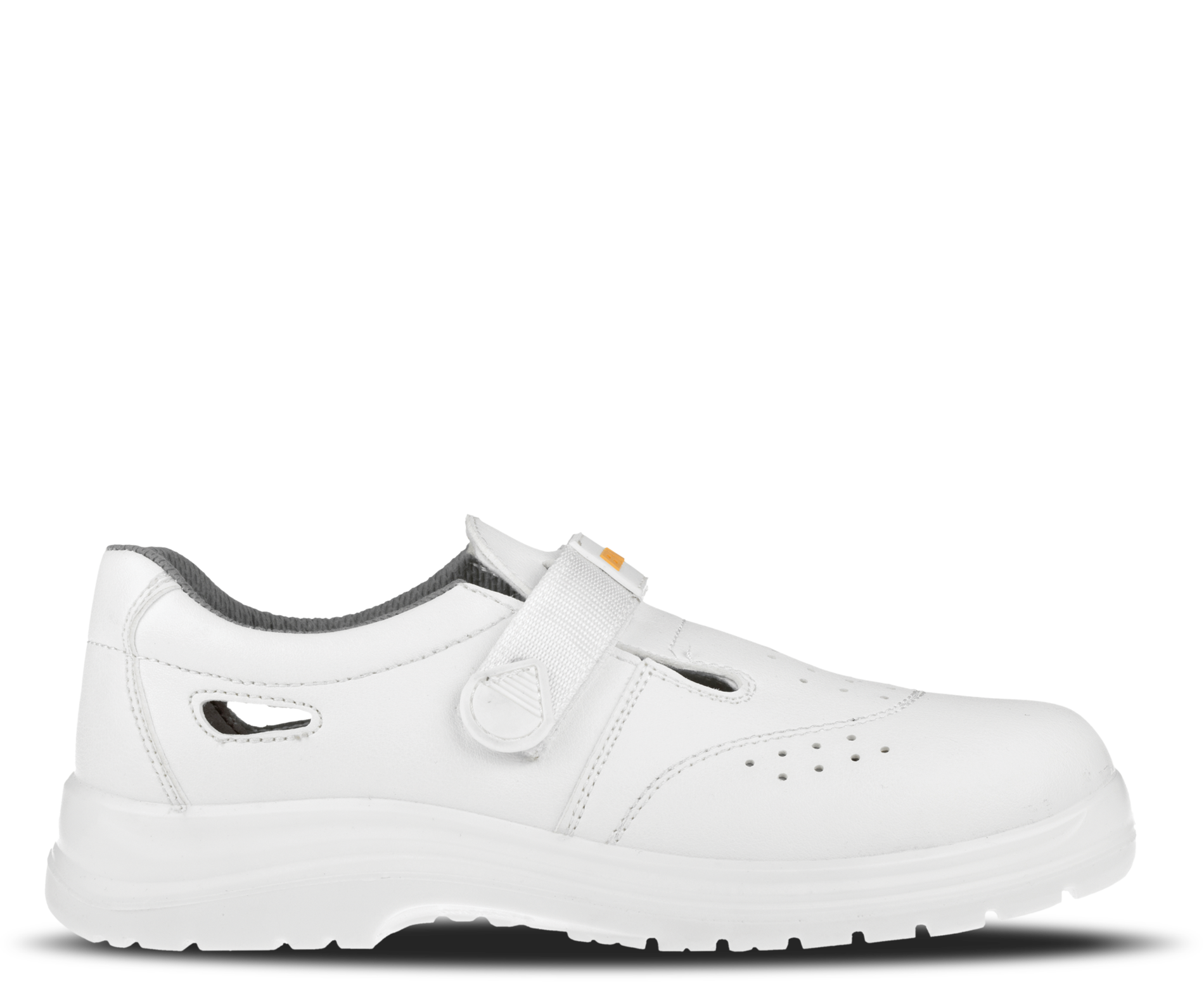 Specializovaná bílá obuv sandálového střihu vhodná do provozů vyžadujících světlou, lehce udržovatelnou obuv. Tato obuv je vybavena ocelovou bezpečnostní tužinkou.