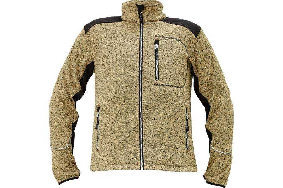 Popis: pánský celopropínací svetr z melírovaného úpletu uvnitř počesaná; zesílená část v oblasti ramen a rukávů sofsthellovým materiálem v kontrastní barvě; 1 náprsní kapsa na zip; 2 postranní kapsy na zip; nastavitelná šíře spodního obvodu; dekorativní reflexní paspulka na rukávu, očko na palec