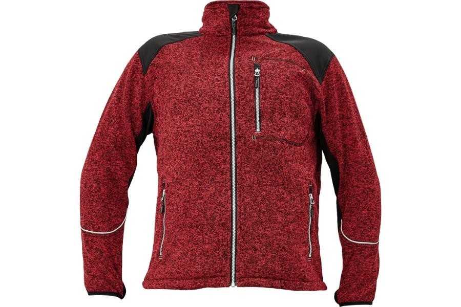 Popis: pánský celopropínací svetr z melírovaného úpletu uvnitř počesaná; zesílená část v oblasti ramen a rukávů sofsthellovým materiálem v kontrastní barvě; 1 náprsní kapsa na zip; 2 postranní kapsy na zip; nastavitelná šíře spodního obvodu; dekorativní reflexní paspulka na rukávu, očko na palec