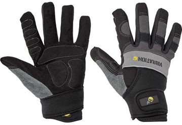 Certifikované antivibrační rukavice, úplet ze směsi bavlny a polyesteru, latexové antivibrační polštářky na dlani a prstech. EN ISO 10819