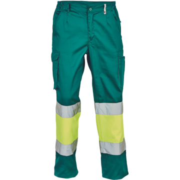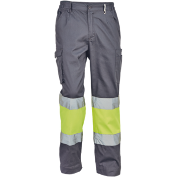 Pánské lehké pracovní kalhoty v kombinaci s HI-VIS holenní částí s reflexními pruhy.
