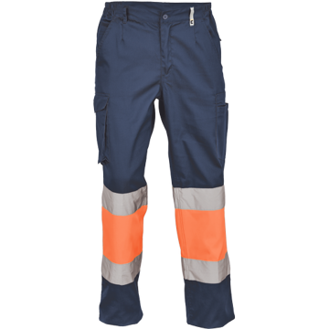 Pánské lehké pracovní kalhoty v kombinaci s HI-VIS holenní částí s reflexními pruhy.