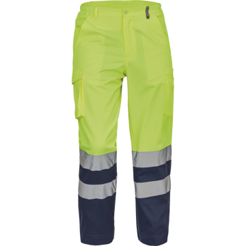 Popis: pánské lehké HI-VIS pracovní kalhoty s reflexními pruhy, elastický pas; 2 postranní kapsy, 1 kapsička na mince; 2 stehenní kapsy, 2 zadní kapsy; nastavitelná délka nohavic