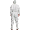 ochranná kombinéza s kapucí a klopou na zipu a gumičkou stahovatelnými rukávy a nohavicemi
