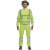 Pánská zateplená full HI-VIS vesta s reflexními pruhy přes ramena a v bocích.