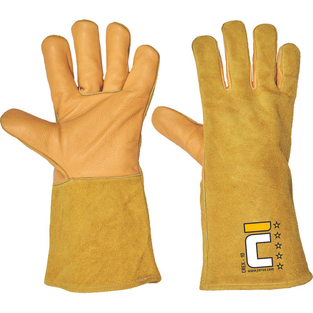 Celokožené svářečské rukavice, dlaň z hovězí lícovky, hřbet a manžeta ze štípenky. Díky měkké kůži poskytuje dokonalou citlivost. Délka rukavic:35cm