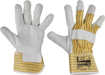 Rukavice z lícové hověziny v dlani s podšívkou a z bavlněné tkaniny na hřbetu a manžetě.