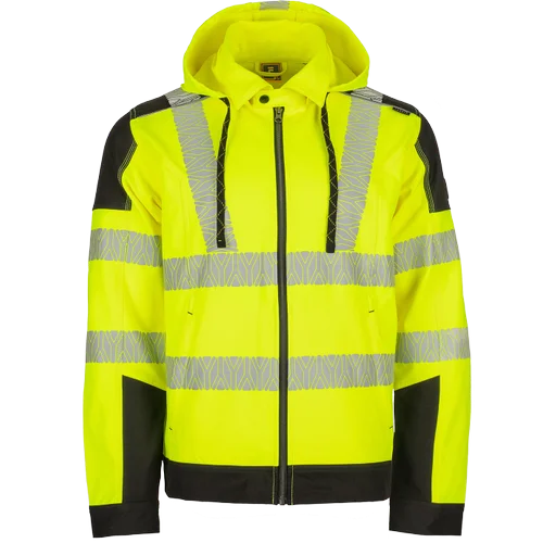 • HV polyesterová 4way strečová tkanina • segmentované reflexní design pruhy • dvě boční kapsy • odnímatelná kapuce • zesílení v oblasti ramen