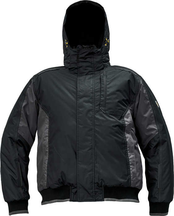 Popis: pánská zimní pilotka s odepínací kapucí; 1 náprsní kapsa na zip; 2 postranní kapsy na zip; 2 vnitřní kapsy na zip; hlavní zip krytý légou se zapínáním na suchý zip; stahovací šňůrka v kapuci; fleece v límci a kapuci; elastické žebrované náplety na rukávech a spodním obvodu; možnost strojního vyšívání; reflektivní prvky v barevném odstínu.