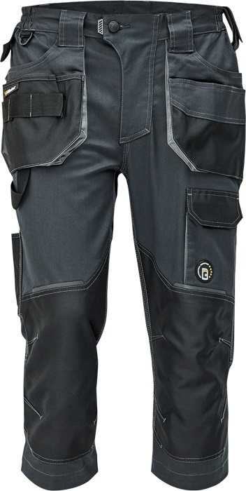Popis: pánské pracovní 3/4 kalhoty; elastický inovativní materiál TRIFIBETEX; ergonomický střih; snížený pružný pas; odolné trojité prošití nohavic a sedu; zesílená kapsa na nákoleníky z materiálu Oxford; prostorné multifunkční přední kapsy s poutky na nářadí; 2 zadní kapsy s klopou zesílené Oxfordem; stehenní kapsa na telefon s klopou a zapínáním na suchý zip; kapsa na metr a nůž; poutko na kladivo; "D" kroužek; poutko nanářadí v pase; originální zpracování zapínání kalhot; reflektivní prvky v barevném odstínu
