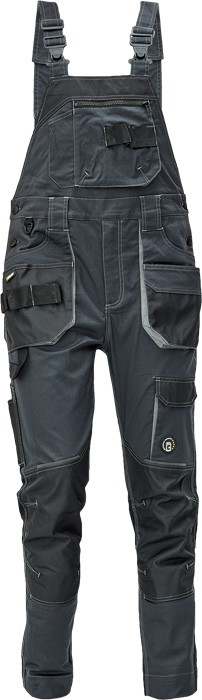 Popis: pánské pracovní kalhoty s laclem; elastický inovativní materiál TRIFIBETEX; ergonomický střih; pružný pas; odolné trojité prošití nohavic a sedu; zesílená kapsa na nákoleníky z materiálu Oxford; prostorné multifunkční přední kapsy s poutky na nářadí; 2 zadní kapsy s klopou zesílené Oxfordem; stehenní kapsa na telefon s klopou a zapínáním na suchý zip; kapsa na metr a nůž; poutko na kladivo; "D" kroužek; poutko nanářadí v pase; reflektivní prvky v barevném odstínu; nastavitelná délka nohavic