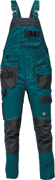 Popis: pánské pracovní kalhoty s laclem; elastický inovativní materiál TRIFIBETEX; ergonomický střih; pružný pas; odolné trojité prošití nohavic a sedu; zesílená kapsa na nákoleníky z materiálu Oxford; prostorné multifunkční přední kapsy s poutky na nářadí; 2 zadní kapsy s klopou zesílené Oxfordem; stehenní kapsa na telefon s klopou a zapínáním na suchý zip; kapsa na metr a nůž; poutko na kladivo; "D" kroužek; poutko nanářadí v pase; reflektivní prvky v barevném odstínu; nastavitelná délka nohavic