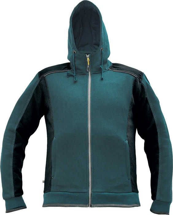 Popis: pánská celopropínací mikina na zip s kapucí; kvalitní počesaný výplněk ve vyšší gramáži; pohodlný střih; zesílená oblast ramen z materiálu Oxford; 2 postranní kapsy se zapínáním na zip; reflektivní prvky v barevném odstínu; elastické žebrovité náplety na rukávech a spodním obvodu