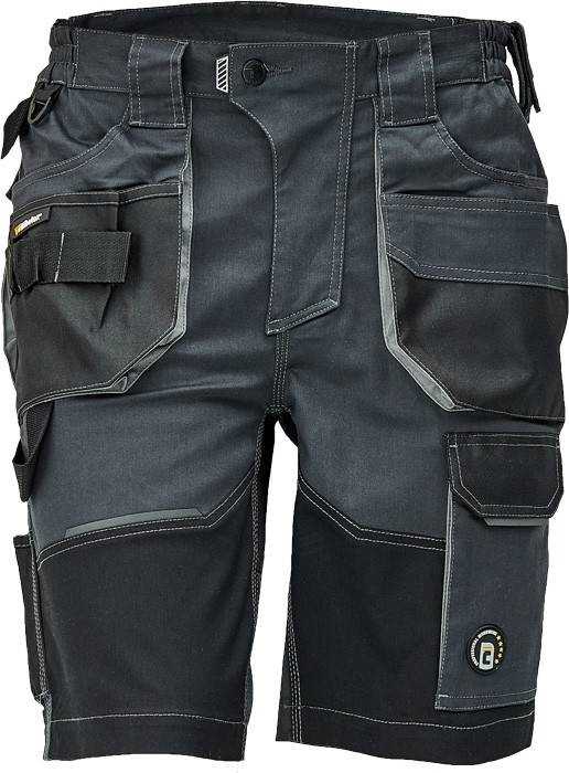 Popis: pánské pracovní šortky; elastický inovativní materiál TRIFIBETEX; ergonomický střih; snížený pružný pas; odolné trojité prošití nohavic a sedu; prostorné multifunkční přední kapsy s poutky na nářadí; 2 zadní kapsy s klopou zesílené Oxfordem; stehenní kapsa na telefon s klopou a zapínáním na suchý zip; kapsa na metr a nůž; poutko na kladivo; "D" kroužek; poutko nanářadí v pase; originální zpracování zapínání kalhot; reflektivní prvky v barevném odstínu
