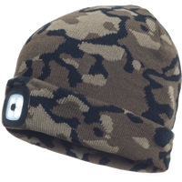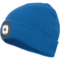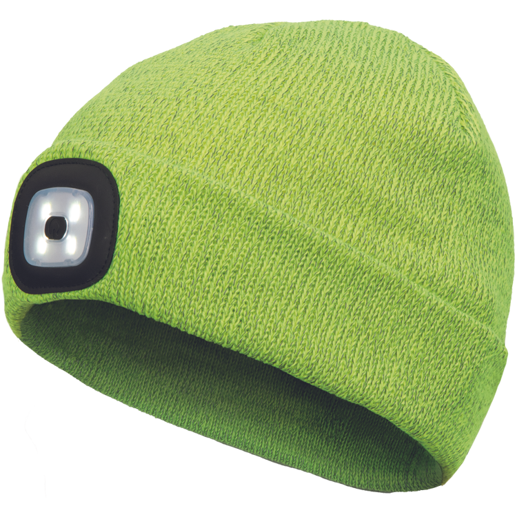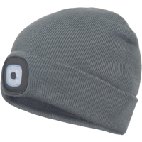 pletená čepice s integrovanou LED lampou; 3 funkce svícení; svítivost 150 lm; LED lampu lze vyjmout a dobít přes USB konektor; nabíjecí výkon: 0,5W; nabíjecí napětí: 5V; nabíjecí proud: 200 mAh; jmenovitý výkon: 1W