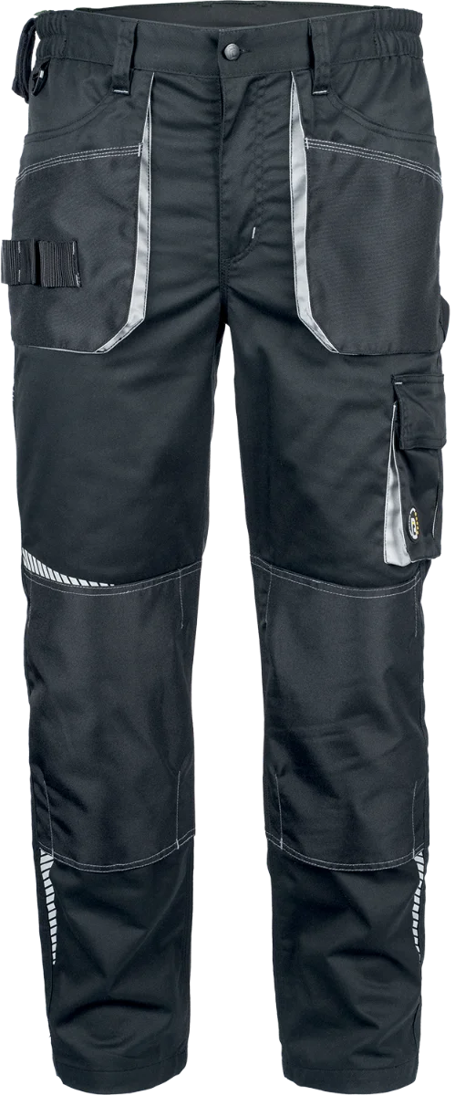 • zimní zateplené kalhoty s elastickým pasem • dvě boční multifunkční kapsy • dvě zadní kapsy s klopami na suchý zip • levá stehenní kapsa s klopou na suchý zip • pravá stehenní kapsa na nářadí • kolenní kapsy pro vložení chráničů kolen • reflexní detaily
