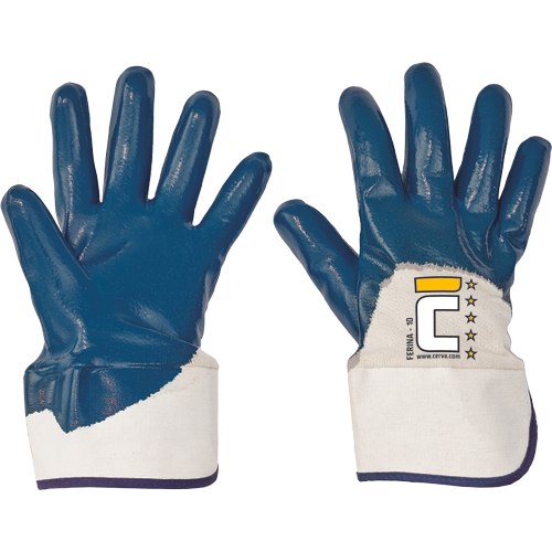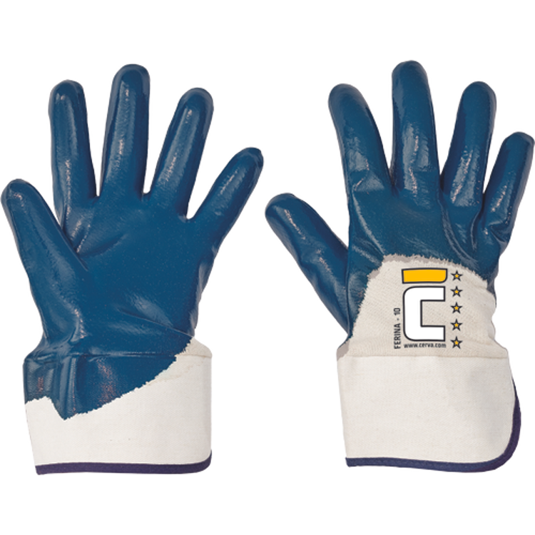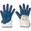 Rukavice šité z bavlněného úpletu, polomáčené v nitrilu (protismykový úchop) a široká manžeta s možností převlečení přes oděv. Jsou určené pro prácí s abrazivními materiály v silně zaolejovaném prostředí.