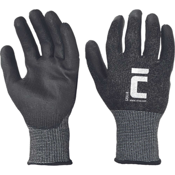 pletené bezešvé rukavice z polyesteru, spandexu, nylonu a skleněného vlákna máčené v PU • odolnost vůči řezu třída C • hustota úpletu 13 GG
