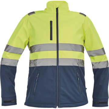 Pánská HI-VIS softshellová bunda s reflexními pruhy přes ramena.