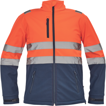 Popis: pánská HI-VIS softshellová bunda s reflexními pruhy přes ramena, v bocích a na rukávech; prodyšná TPU membrána odolná dešti; zapínání na zip; 1 náprsní kapsa a 2 postranní kapsy na zip; elastické lemy rukávů a boků